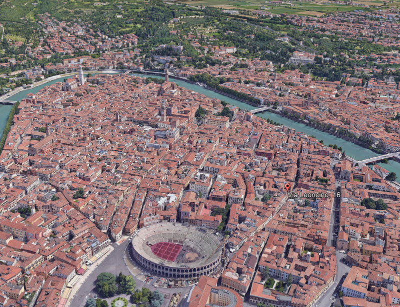 Verona.Il nostro studio si trova all’interno di palazzo Giusti del Giardino, già palazzo Albertini, una costruzione di origini cinquecentesche situata a pochi passi dall’Arena e dalla chiesa di San Fermo. Un luogo in cui toccare con mano la storia della città: originariamente poggiato su quella che era la cinta muraria romana voluta dall’imperatore Gallieno nel III secolo d.C., l’edificio ne conserva infatti un tratto, tuttora visibile all’interno dello Studio.